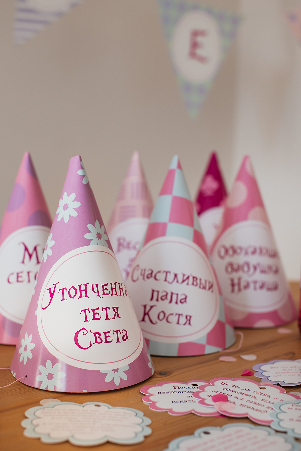 Представьте только: у каждого вашего гостя персональный колпачок с милой или забавной характеристикой - заботливая бабушка, самая красивая крестная и т.п. Это не просто украшения, это - знак внимания.